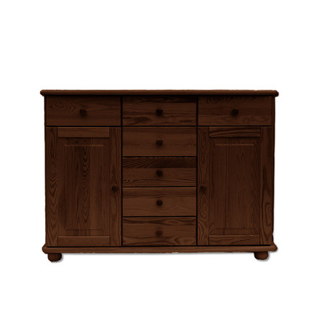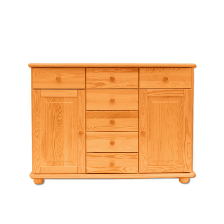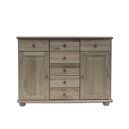 Kvalitní komoda KD153. Dřevěná kombinovaná komoda se 7 zásuvkami a 2 dvířky je vyrobena z masivní přírodní borovice a je povrchově upravená ekologickým lakováním. Zásuvky jsou dřevěné na kolečkových výsuvech. Tato komoda se vyznačuje pečlivým zpracováním a dlouhou životností.
