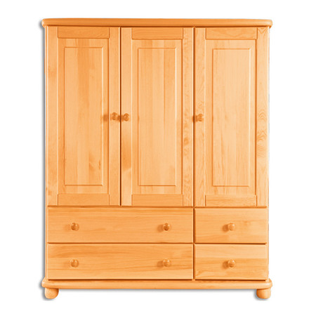 Kvalitní komoda KD166. Dřevěná kombinovaná komoda se 4 zásuvkami 3 dvířky je vyrobena z masivní přírodní borovice a je povrchově upravená ekologickým lakováním. Zásuvky jsou dřevěné na kolečkových výsuvech. Tato komoda se vyznačuje pečlivým zpracováním a dlouhou životností.