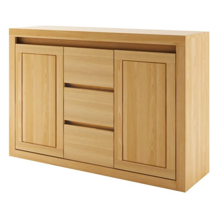 Komoda KD413. Prostorná, buková komoda je řešením, jak krásně zařídit interiér a poskytnout spoustu úložného prostoru. Je vyrobena v módním minimalistickém stylu a zaujme svou jednoduchostí. Prostorné funkční zásuvky a skříňky umožňují praktické a pohodlné uložení věcí v domácnosti.