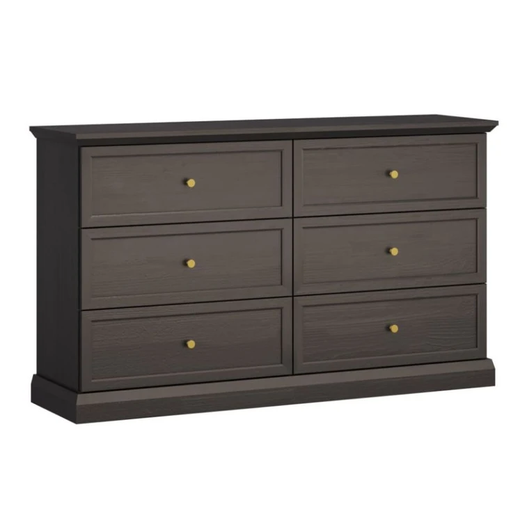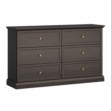 Praktická komoda se šesti prostornými zásuvkami. Černohnědý nebo bílý dekor s hlubokými přírodními póry dřeva má různé stupně lesku a působí mimořádně dynamicky a velmi rozmanitě. Kolekce Lucca vám umožňuje volně míchat klasický a moderní styl.