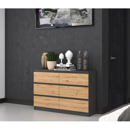 Komoda Malva 6 zásuvek 140 - antracit/dub artisan
