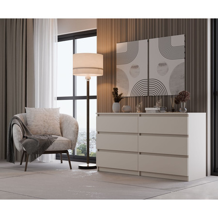 Jednoduchá a moderní komoda. Je vyrobená z pevné laminované desky, která je odolná proti oděru a poškození. Univerzální vzhled splní očekávání každého, kdo ocení kombinaci jednoduchosti a elegance. Bezúchytková čela zásuvek zajišťují pohodlné používání.