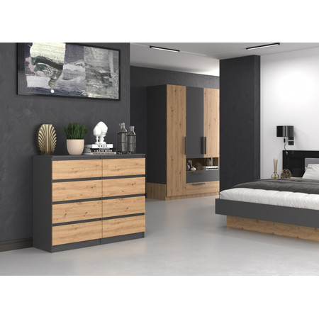 Komoda Malva 8 zásuvek 120 - antracit/dub artisan