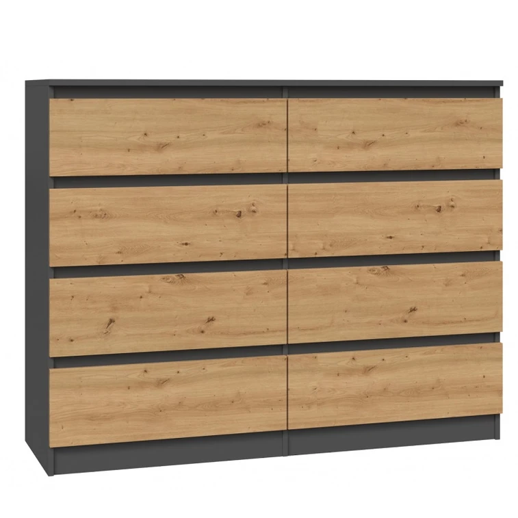 Komoda Malva 8 zásuvek 140 - antracit/dub artisan