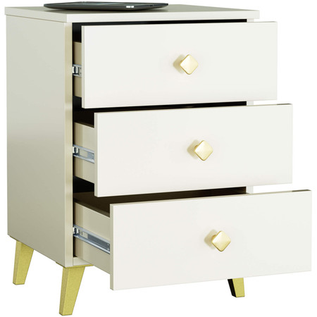 Moderní komoda se 3 prostornými zásuvkami. Vysoké plastové nohy umožňují snadný přístup pro vysavač.