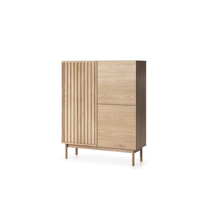 Komoda K3D má tři prostorné skříňky na oblečení nebo dokumenty. Povrch pracovní desky umožňuje vystavit dekorace. Vysoké dřevěné nohy s přídavnou podpěrou, které umožňují snadný přístup pro vysavač.