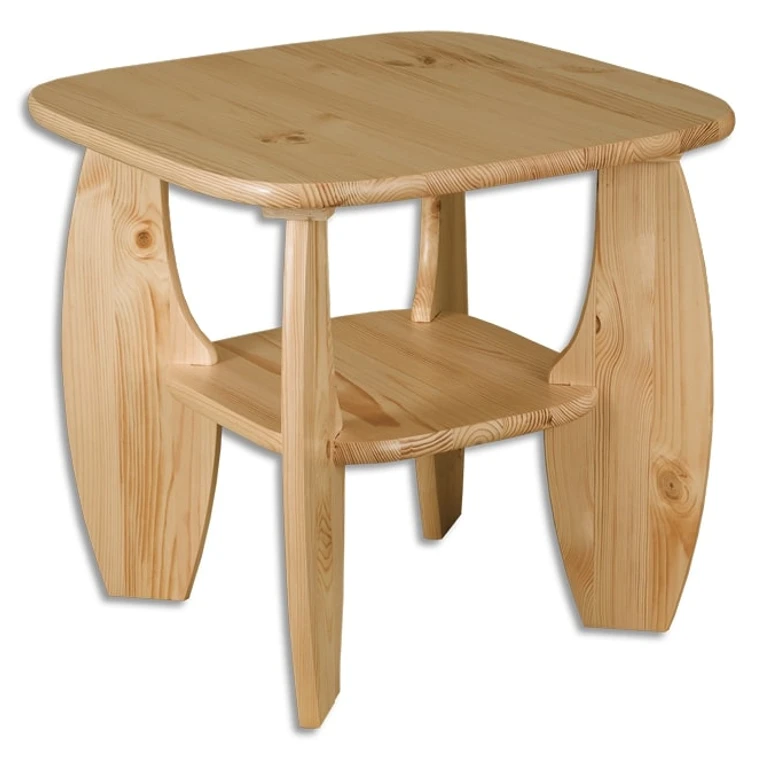 Konferenční stolek 65 cm ST115. Je vyrobený z masivní borovice, k jeho výrobě je použitý prvotřídní materiál a pro povrchovou úpravu ekologický lak. Stůl je jednoduchý, praktický a vhodný do každé domácnosti. Výrobek se vyznačuje pečlivým zpracováním a dlouhou životností.