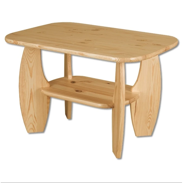 Konferenční stolek 92 cm ST114. Stůl je vyrobený z masivní borovice, k jeho výrobě je použitý prvotřídní materiál a pro povrchovou úpravu ekologický lak. Stůl je jednoduchý, praktický a vhodný do každé domácnosti. Výrobek se vyznačuje pečlivým zpracováním a dlouhou životností.