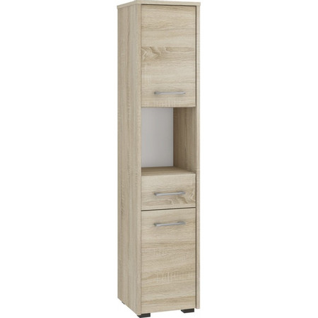 Koupelnová skříňka FIN 2D 1SZ 1W.V každé koupelně se najdou věci, které potřebují svůj prostor. Koupelnová skříňka nezabere moc prostoru a pomůže vám věci v koupelně zorganizovat. Univerzální design splňuje očekávání všech těch, kteří mají rádi kombinaci jednoduchosti a elegance. Minimalistické rukojeti zajišťují pohodlný přístup k obsahu skříňky.