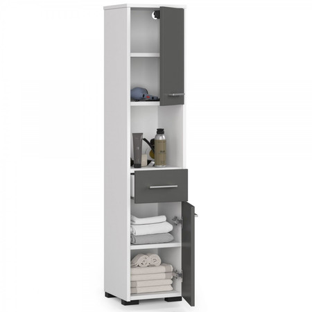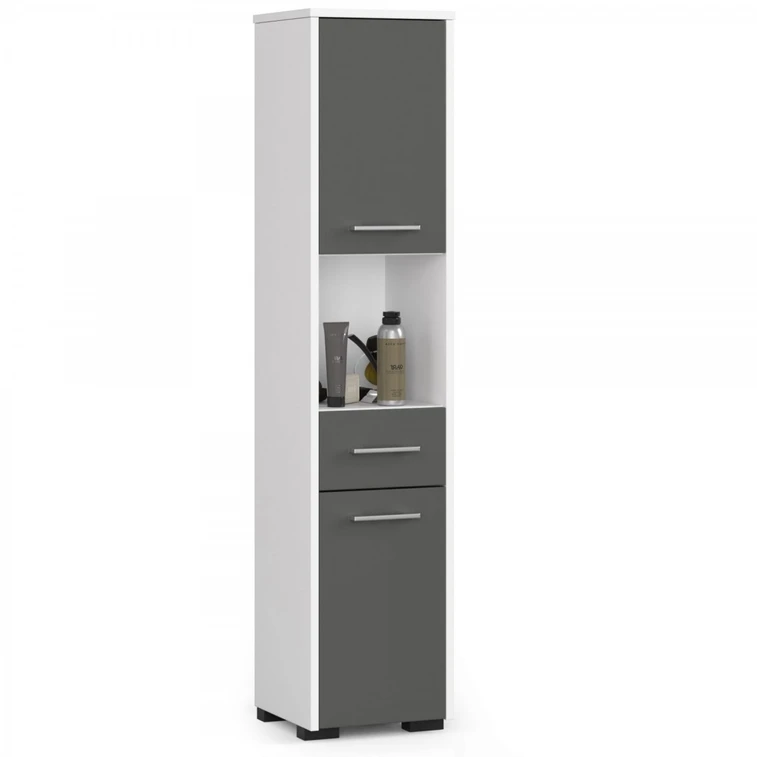Koupelnová skříňka FIN 2D 1SZW. V každé koupelně se najdou věci, které potřebují svůj prostor. Koupelnová skříňka nezabere moc prostoru a pomůže vám věci v koupelně zorganizovat. Univerzální design splňuje očekávání všech těch, kteří mají rádi kombinaci jednoduchosti a elegance. Minimalistické rukojeti zajišťují pohodlný přístup k obsahu skříňky.