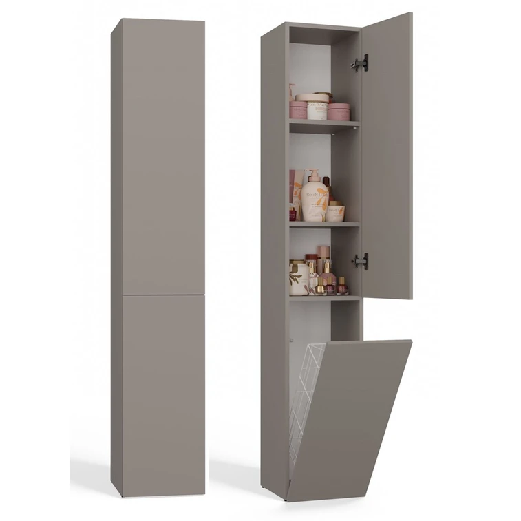 V každé koupelně se najdou věci, které potřebují svůj prostor. Koupelnová skříňka nezabere moc prostoru a pomůže vám věci v koupelně zorganizovat. Univerzální design splňuje očekávání všech těch, kteří mají rádi kombinaci jednoduchosti a elegance. Bezúchytková čela dvířek zajišťují pohodlné používání - systém TIP-ON  otvírá se jemným zatlačením na čelo dvířek.