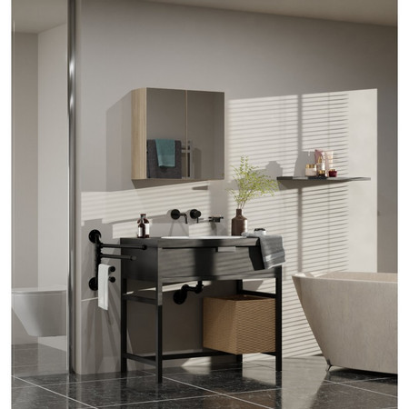 Koupelnová skříňka je vyrobená z pevné laminované desky, která je odolná proti oděru a poškození. Univerzální vzhled splní očekávání každého, kdo ocení kombinaci jednoduchosti a elegance.