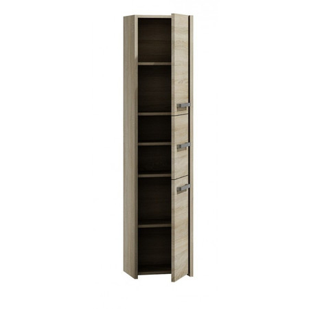 Koupelnová skříňka s regálem 43. V každé koupelně se najdou věci, které potřebují svůj prostor. Koupelnová skříňka nezabere moc prostoru a pomůže vám věci v koupelně zorganizovat. Univerzální design splňuje očekávání všech těch, kteří mají rádi kombinaci jednoduchosti a elegance. Minimalistické rukojeti zajišťují pohodlný přístup k obsahu skříňky.