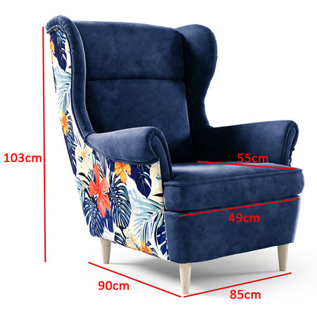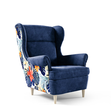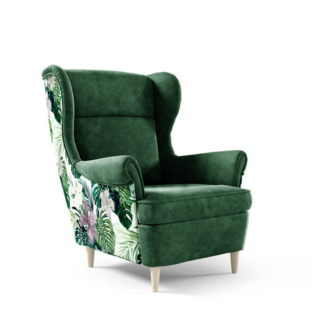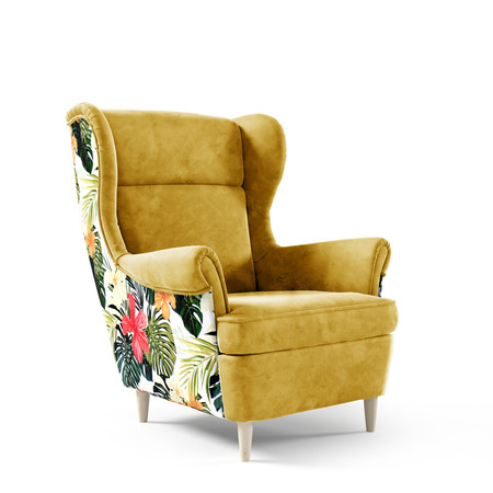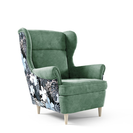 Pohodlné, kompaktní křeslo 193 Molly, nohy jsou světlé bukové.