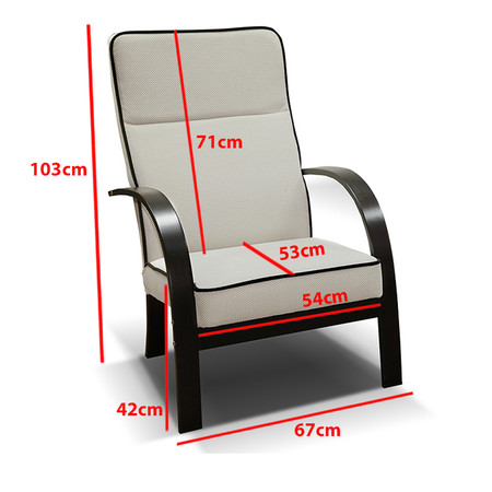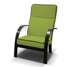 Pevná konstrukce ze dřeva a OSB desky. Boky křesla jsou s dřevěnými prvky.