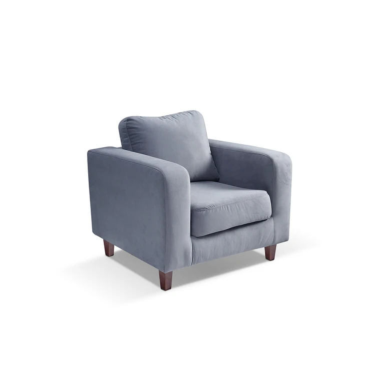 Toto křeslo potažené odolnou látkou kombinuje pohodlí a eleganci.