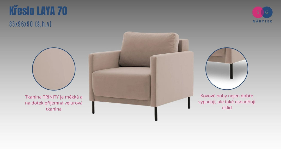 Potah z kvalitní látky TRINITY v mnoha moderních barevných odstínech. Moderní design vhodný do všech současných interiérů.