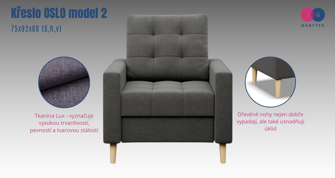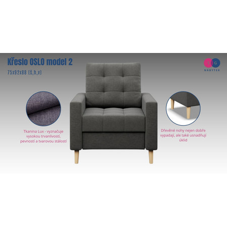 Kvalitní čalouněné křeslo. Pevná konstrukce ze dřeva a OSB desky. Moderní skandinávský design vhodný do všech současných interiérů.