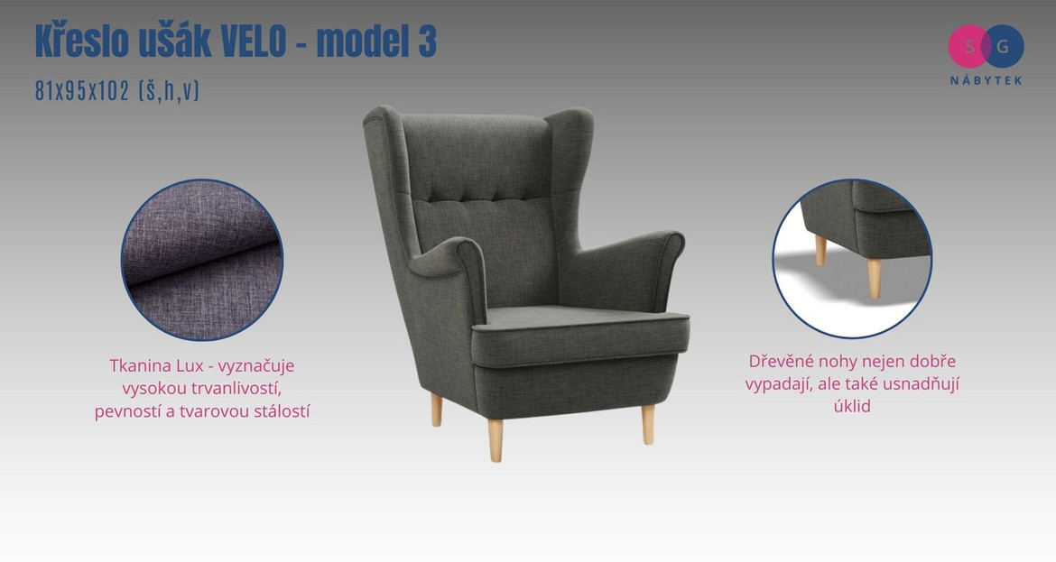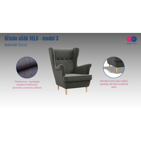 Křeslo ušák VELO - model 3