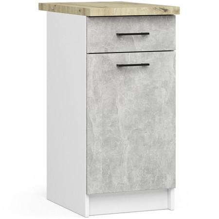 Jednoduchý kuchyňský nábytek Olivia je nabídka určená lidem, kteří jsou ve fázi zařizování své malé kuchyně. Systémová řešení jsou mimořádně funkční a dobře fungují v malých místnostech. Představujeme vám systém kuchyňských skříněk s deskou, která kombinuje módní odstín dub sonoma a klasicky krásnou, nesmrtelnou bílou a beton.