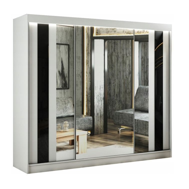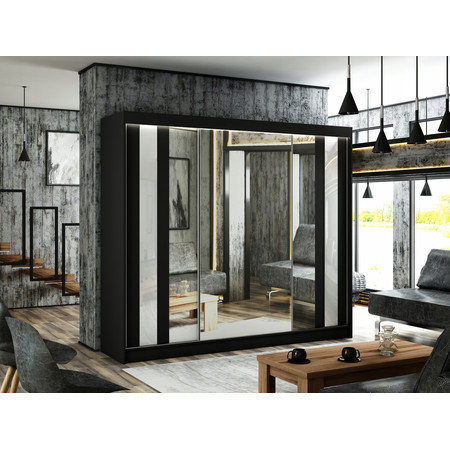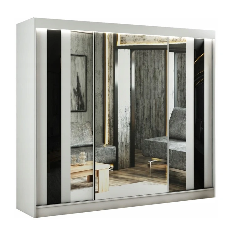 Posuvná šatní skříň je vyrobena v moderním designu a nabízí velké množství praktického úložného prostoru.