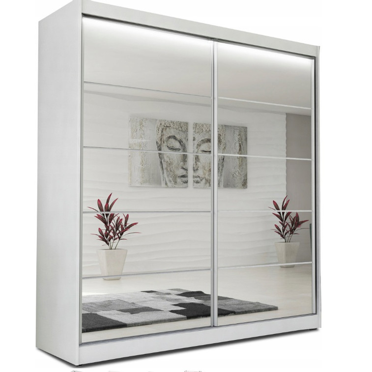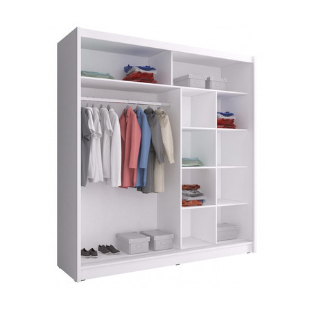 Šatní skříň je vyrobena v moderním designu a nabízí velké množství praktického úložného prostoru. Neocenitelný je systém trendových posuvných dveří, které usnadňují manipulaci a šetří prostor v interiéru.