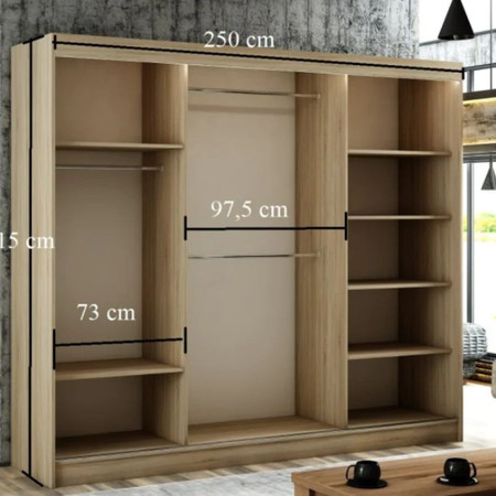 Šatní skříň Pako je vyrobena v moderním designu a nabízí velké množství praktického úložného prostoru. Neocenitelný je systém trendových posuvných dveří, které usnadňují manipulaci a šetří prostor v interiéru.