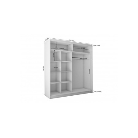 Posuvná šatní skříň Tanna 200 je vyrobena v moderním designu a nabízí velké množství praktického úložného prostoru.