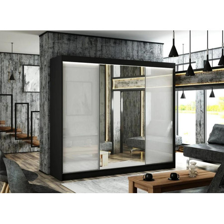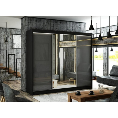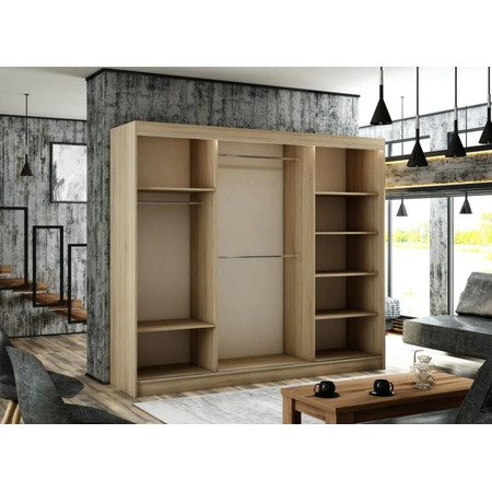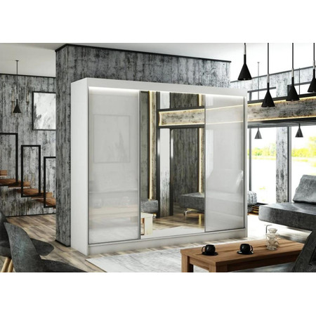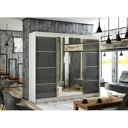 Posuvná šatní skříň je vyrobena v moderním designu a nabízí velké množství praktického úložného prostoru.