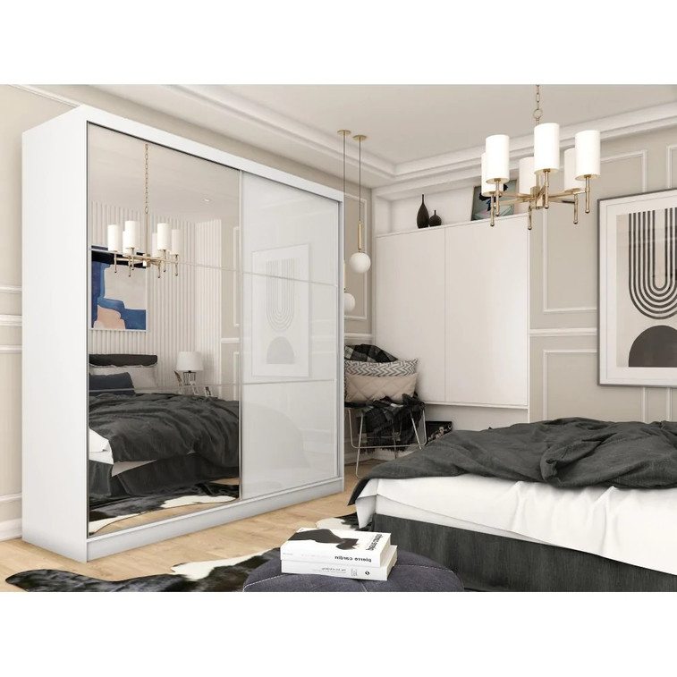 Posuvná šatní skříň je vyrobena v moderním designu a nabízí velké množství praktického úložného prostoru.