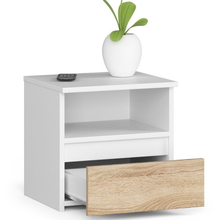 Stolek je vybaven jednou zásuvkou a taktéž jednou poličkou. Skvělé na uchovávání knížek šperků nebo jiných drobností.