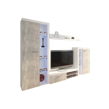 Obývací stěna OLIMP je příkladem moderní sestavy nábytku. Stěna je vyrobena z laminované desky se strukturou dřeva, která vypadá úžasně v každé místnosti. Jednotlivé části ze sestavy je možné umístit samostatně přesně tak, aby se stěna přizpůsobila vaší místnosti a stala se funkční. Skleněné části dodávají kouzlo a oživují celkový vzhled stěny.