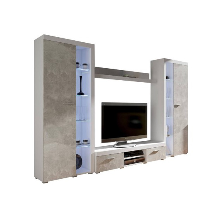 Obývací stěna OLIMP XL je příkladem moderní sestavy nábytku. Stěna je vyrobena z laminované desky se strukturou dřeva, která vypadá úžasně v každé místnosti. Jednotlivé části ze sestavy je možné umístit samostatně přesně tak, aby se stěna přizpůsobila vaší místnosti a stala se funkční. Skleněné části dodávají kouzlo a oživují celkový vzhled stěny.