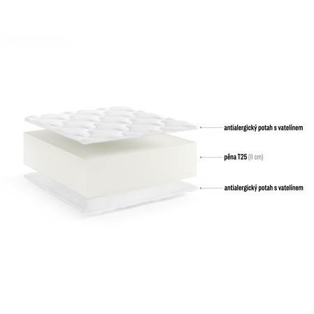 Pěna: Je vyrobena z vysoce kvalitní polyuretanové pěny T25 se zvýšenou pružností a pevností.