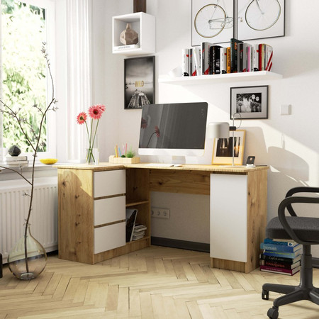 Počítačový stůl B20 155 cm, levá, dub artisan/bílá.