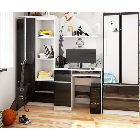 Počítačový stůl Piksel levý bílá/černá lesk