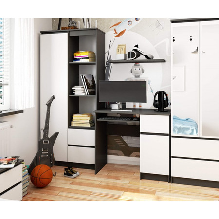 Počítačový stůl PIKSEL, pravá, šedá/bílá.