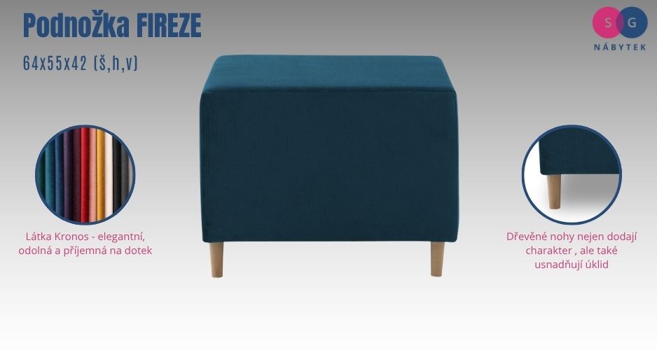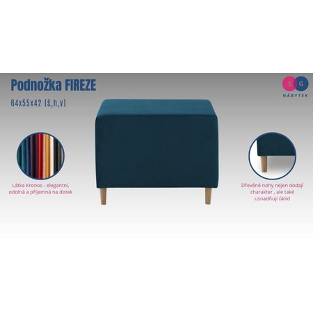 Kvalitní čalouněná podnožka FIREZE - kronos je vyrobena z pevných, vysoce kvalitních materiálů. Nohy jsou vyrobeny ze dřeva.