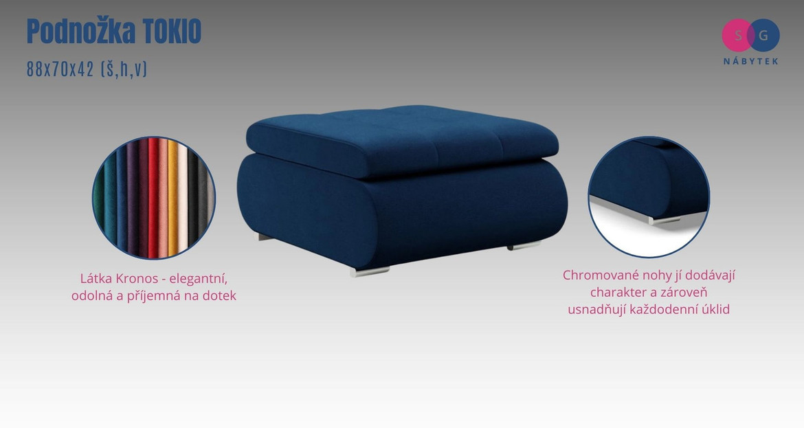 Potah: Textilie Kronos je vyrobená ze 100% polyesteru a řadí se mezi plyšové tkaniny. Kompaktní tkaná textilie je velice měkká a příjemná na dotek.