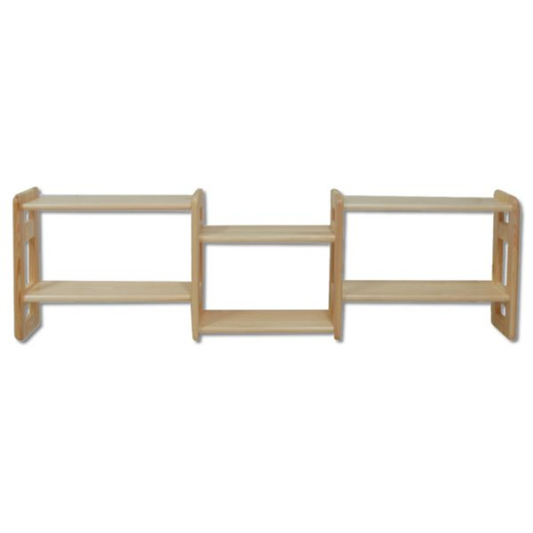 Členitá dřevěná police PK103 z masivu borovice. Oživí váš domov a stane se pěkným doplňkem každé místnosti. Přírodní dřevo, ze kterého je vyrobena, z ní dělá jedinečnou dekoraci do každého interiéru.