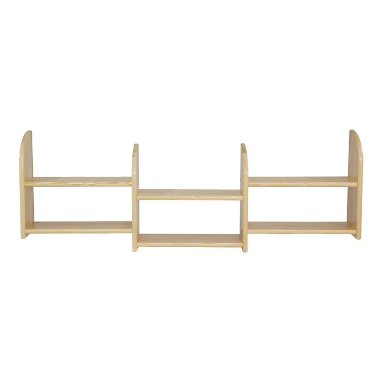 Členitá dřevěná police PK101 z masivu borovice. Oživí váš domov a stane se pěkným doplňkem každé místnosti. Přírodní dřevo, ze kterého je vyrobena, z ní dělá jedinečnou dekoraci do každého interiéru.