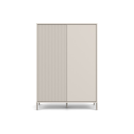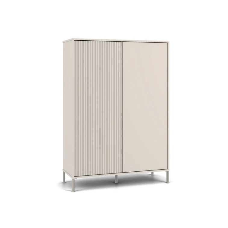 Tento regál je moderní a funkční kus nábytku, který skvěle poslouží v obývacím pokoji, pokoji pro hosty, ložnici nebo pracovně. Díky větší šířce nabízí ještě více úložného prostoru při zachování elegantního charakteru. Kombinace dvířek s hladkým čelem a dvířek s drážkovanou úpravou dodává stylový kontrast a systém TIP-ON umožňuje pohodlné otevírání bez úchytek.