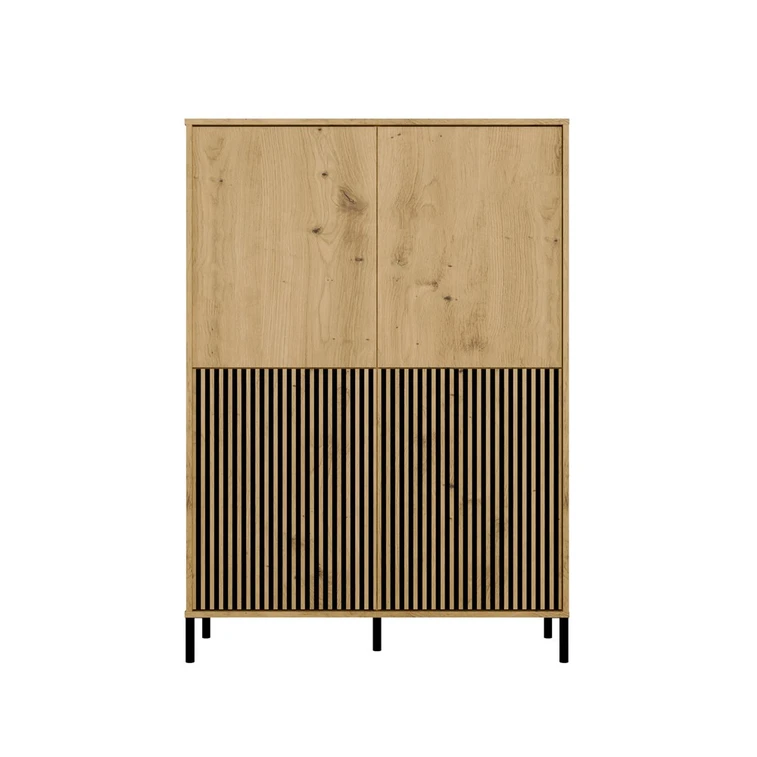 Tento regál je moderní a funkční kus nábytku, který skvěle poslouží v obývacím pokoji, pokoji pro hosty, ložnici nebo pracovně. Díky větší šířce nabízí ještě více úložného prostoru při zachování elegantního charakteru. Kombinace dvířek s hladkým čelem a dvířek s drážkovanou úpravou dodává stylový kontrast a systém TIP-ON umožňuje pohodlné otevírání bez úchytek.