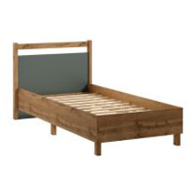 Rám postele L90 je vyroben z masivu borovice. Plocha na spaní 90x200 cm. Přírodní barvy teplého dekoru dub Wotan jako základu nábytku v kombinaci s jednobarevnou béžovou nebo zelenou na výběr dělají kolekci přirozeně krásnou.
