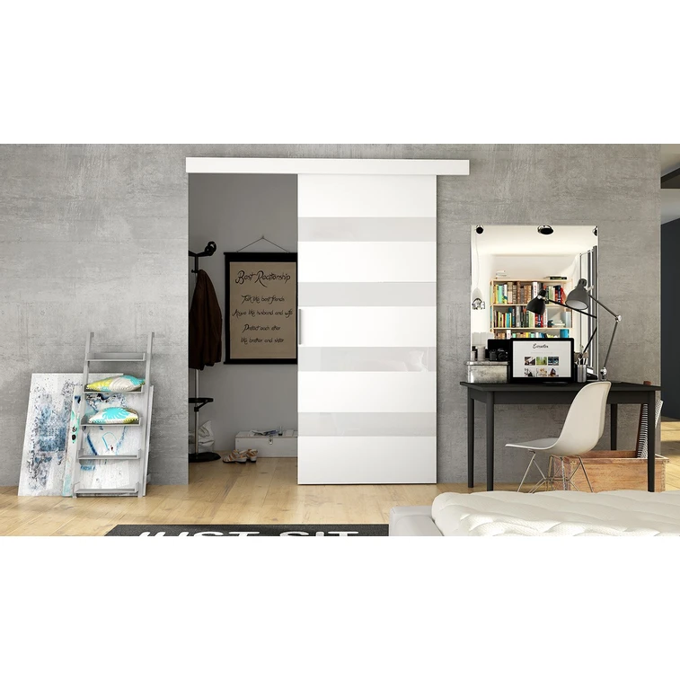 Posuvné dveře MARTI V. Pokud chcete ideálně využít prostor vašeho bytu, posuvné dveře jsou ideálním řešením. Můžete je využít jako oddělení dvou místností, nebo jako dveře do skříně či šatny. Možnost namontovat na pravou i levou stranu. Dveře mají pevné hliníkové madlo.