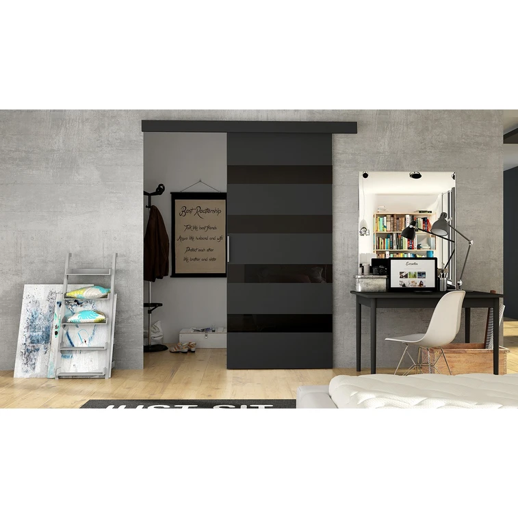 Posuvné dveře MARTI V. Pokud chcete ideálně využít prostor vašeho bytu, posuvné dveře jsou ideálním řešením. Můžete je využít jako oddělení dvou místností, nebo jako dveře do skříně či šatny. Možnost namontovat na pravou i levou stranu. Dveře mají pevné hliníkové madlo.