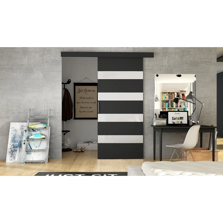 Posuvné dveře MARTI V. Pokud chcete ideálně využít prostor vašeho bytu, posuvné dveře jsou ideálním řešením. Můžete je využít jako oddělení dvou místností, nebo jako dveře do skříně či šatny. Možnost namontovat na pravou i levou stranu. Dveře mají pevné hliníkové madlo o rozměru dvacet osm centimetrů.