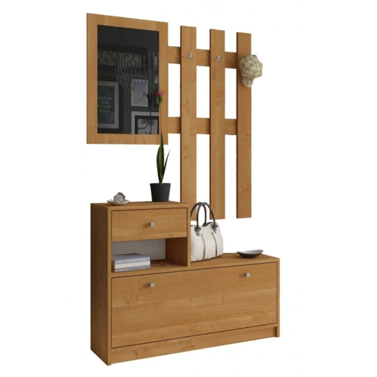 Předsíňová stěna s botníkem a zrcadlem olše