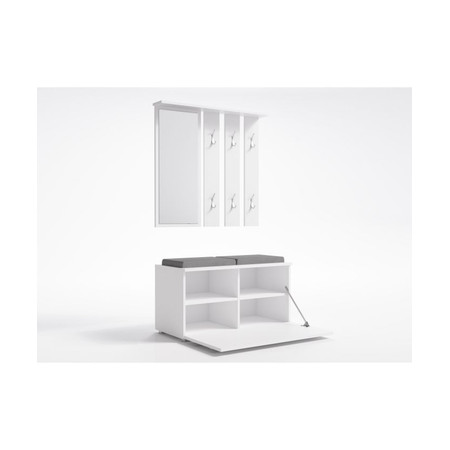 Věšák: Obsahuje šest věšáků na vaše oblečení. Hned vedle věšáku naleznete velké zrcadlo. Kde můžete zkontrolovat svůj finální look, před odchodem z domu.
