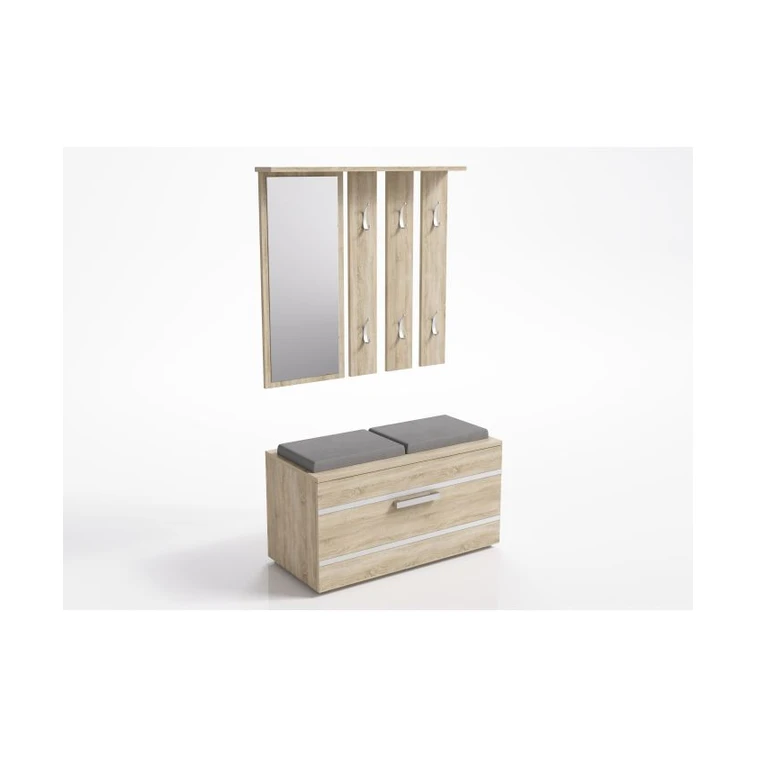 Věšák: Obsahuje šest věšáků na vaše oblečení. Hned vedle věšáku naleznete velké zrcadlo. Kde můžete zkontrolovat svůj finální look, před odchodem z domu.